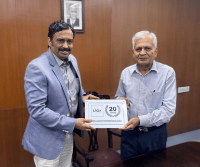 LRQA presented the '30 Years of QMS Excellence' award to Mr. Vikram Velankar, Operations Director, and Mr. Sanjay Marne, Regional HSEQ Manager, Alfa Laval India.