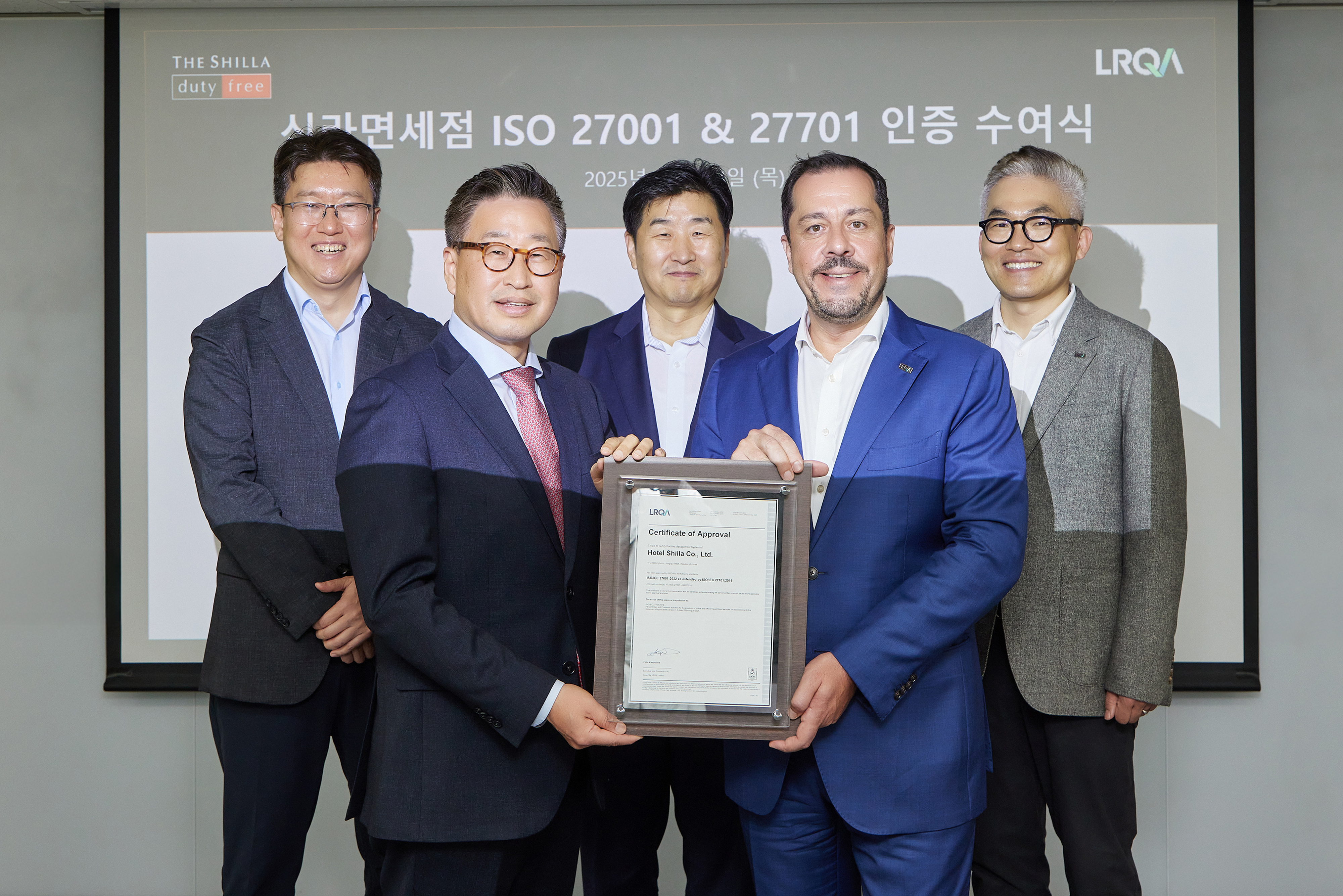 지난 23일, 호텔신라의 정보보호 경영시스템 (ISO/IEC 27701) 및 개인정보보호 경영시스템 (ISO/IEC 27701) 인증서 수여식이 진행되었습니다.