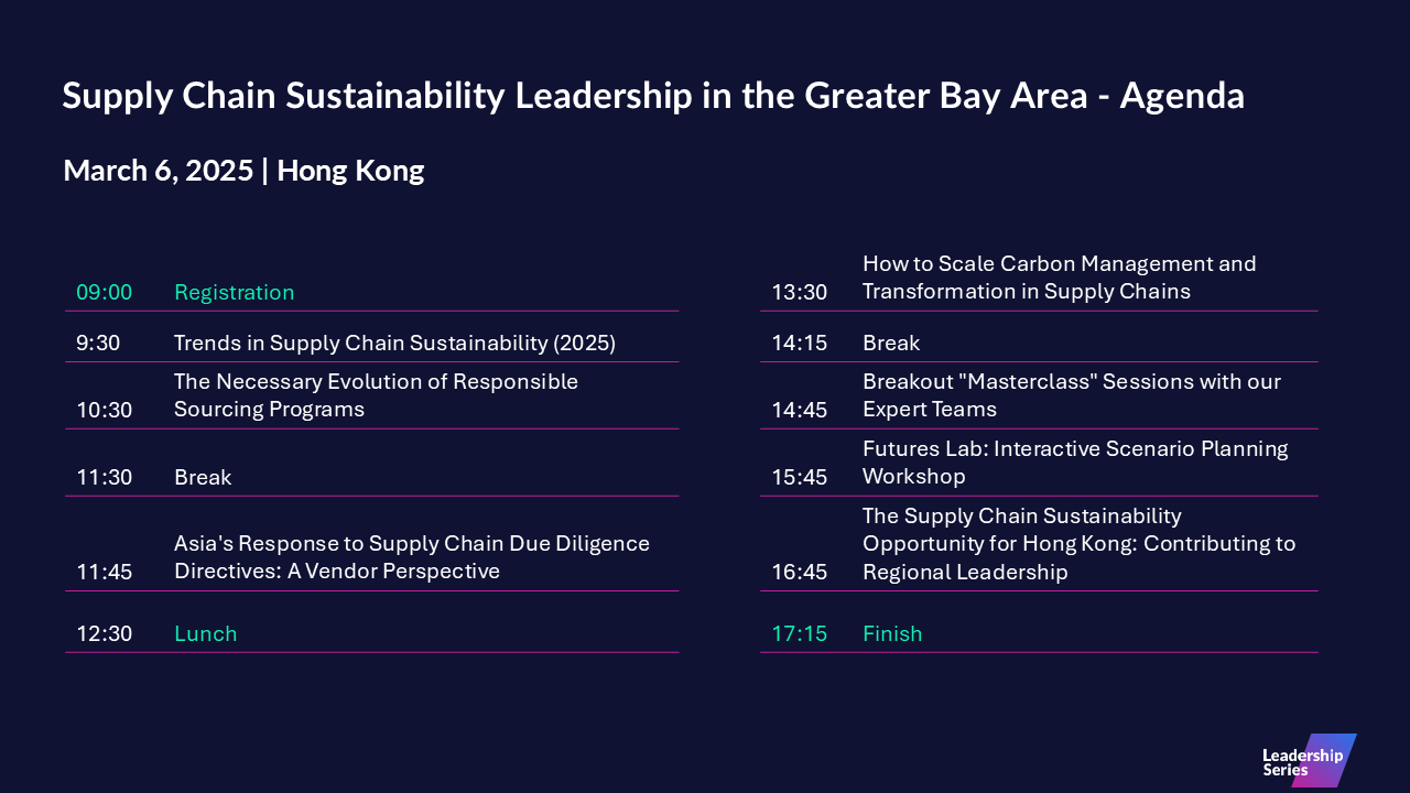 Join us on the 6th March 2025 to discuss Supply Chain Sustainability Leadership in the Greater Bay Area (GBA).
